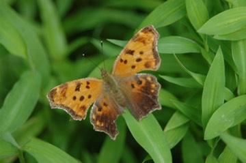 Cigar tree, Catalpa speciosa with spangled fritillary butterfly (Speyeria cybele) in the background